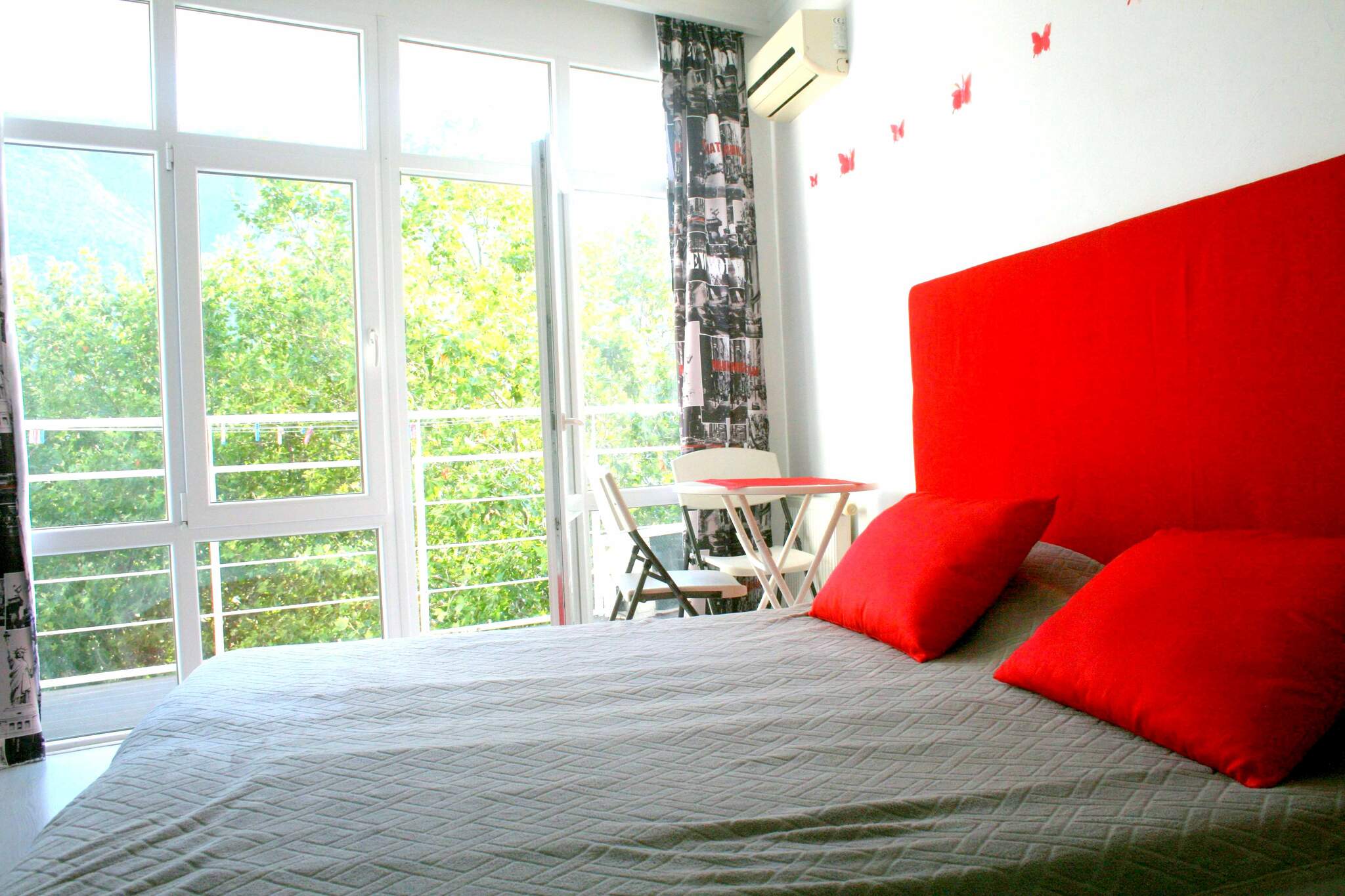 Уютная однокомнатная квартира сдается посуточно в красивейшем месте Южного берега Крыма, по адресу Партенит, улица Прибрежная 7. Поселок Партенит — райский уголок полуострова , расположен у подножия легендарной Медведь-горы , на берегу Черного моря , между Алуштой и Ялтой. Расстояние до Ялты- 25 км , до Алушты- 17км, до аэропорта в Симферополе- 82 км. Дом расположен в 50 метрах от моря , между территорией санатория "Крым" и выходом на городской пляж. В шаговой доступности расположен супермаркет, кафе, ресторан, больница, салон красоты, кинотеатр, рынок, парковая зона. Шикарный вид на Медведь-гору открывается из панорамных окон квартиры. В данных апартаментах с комфортом могут разместиться 3 человека.